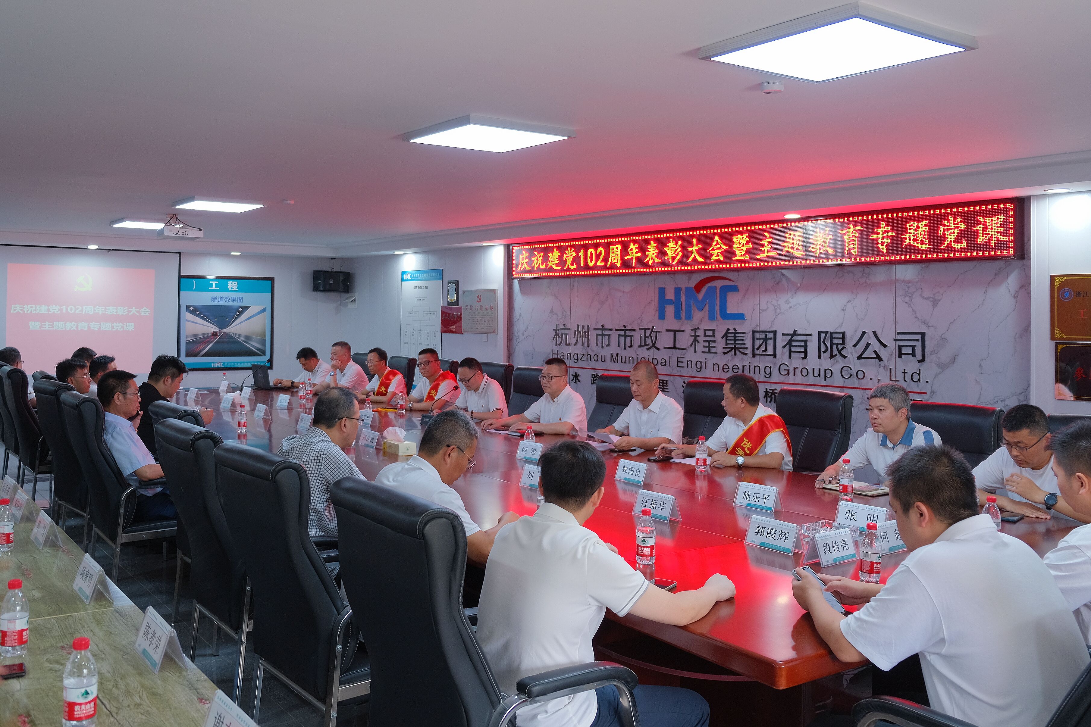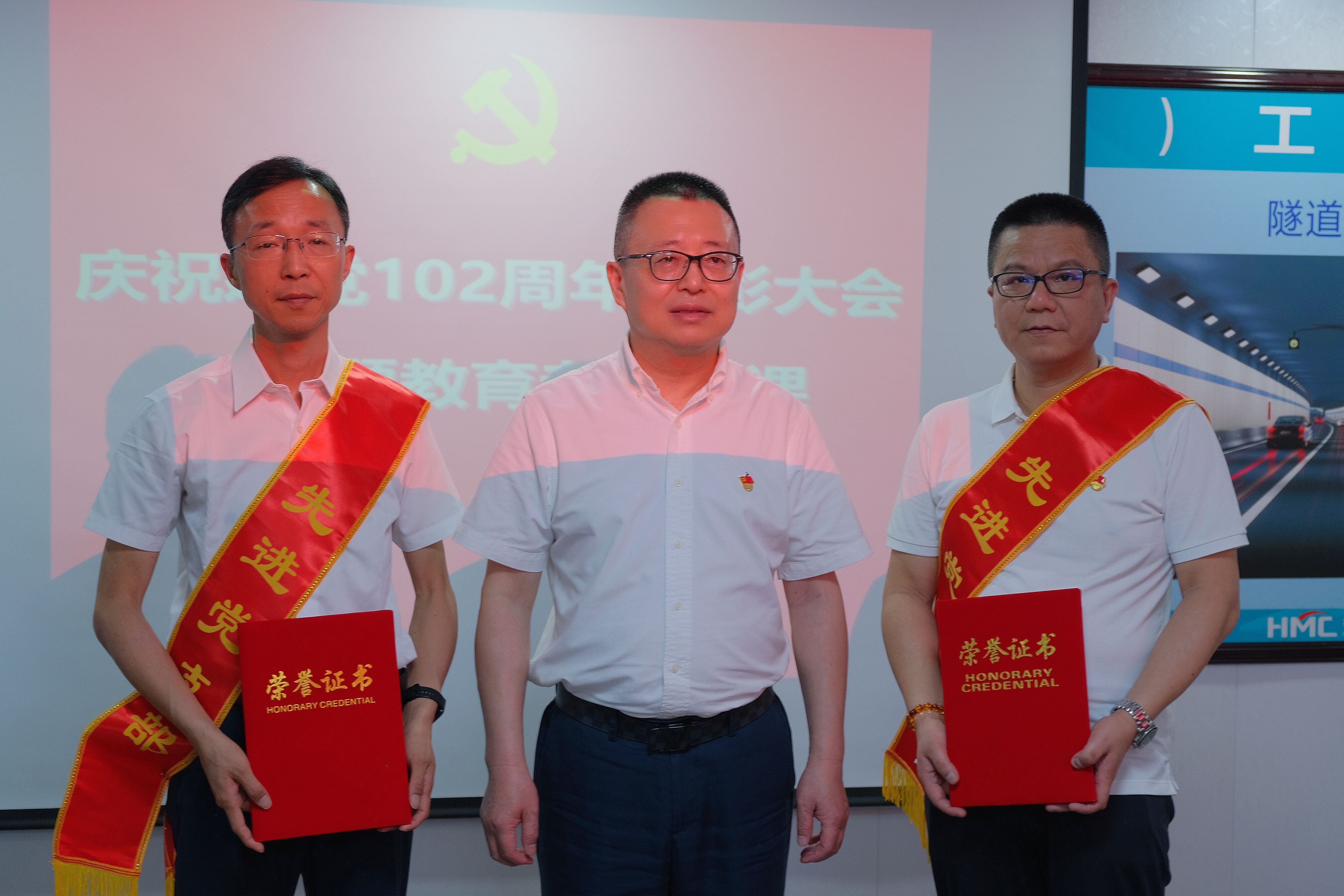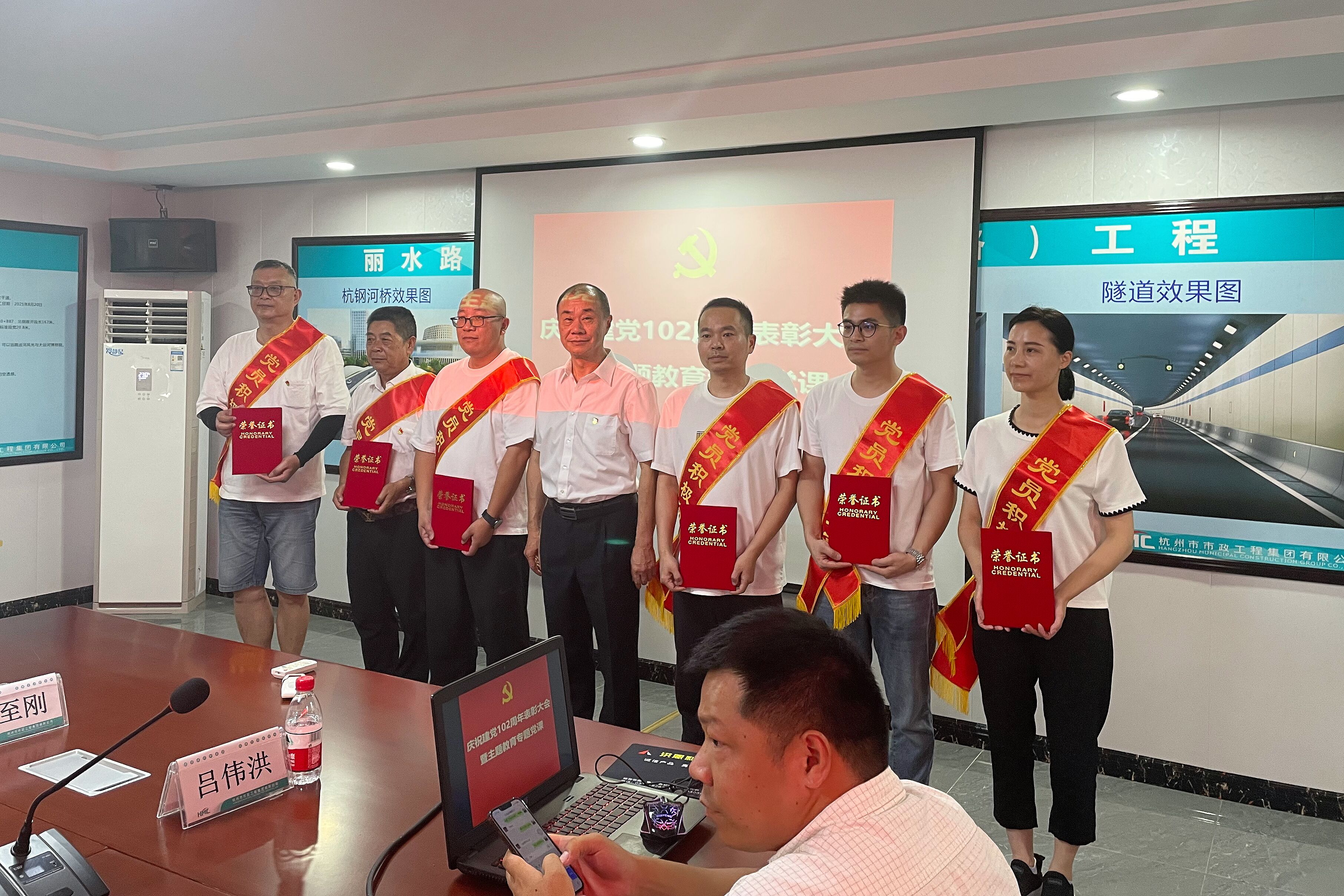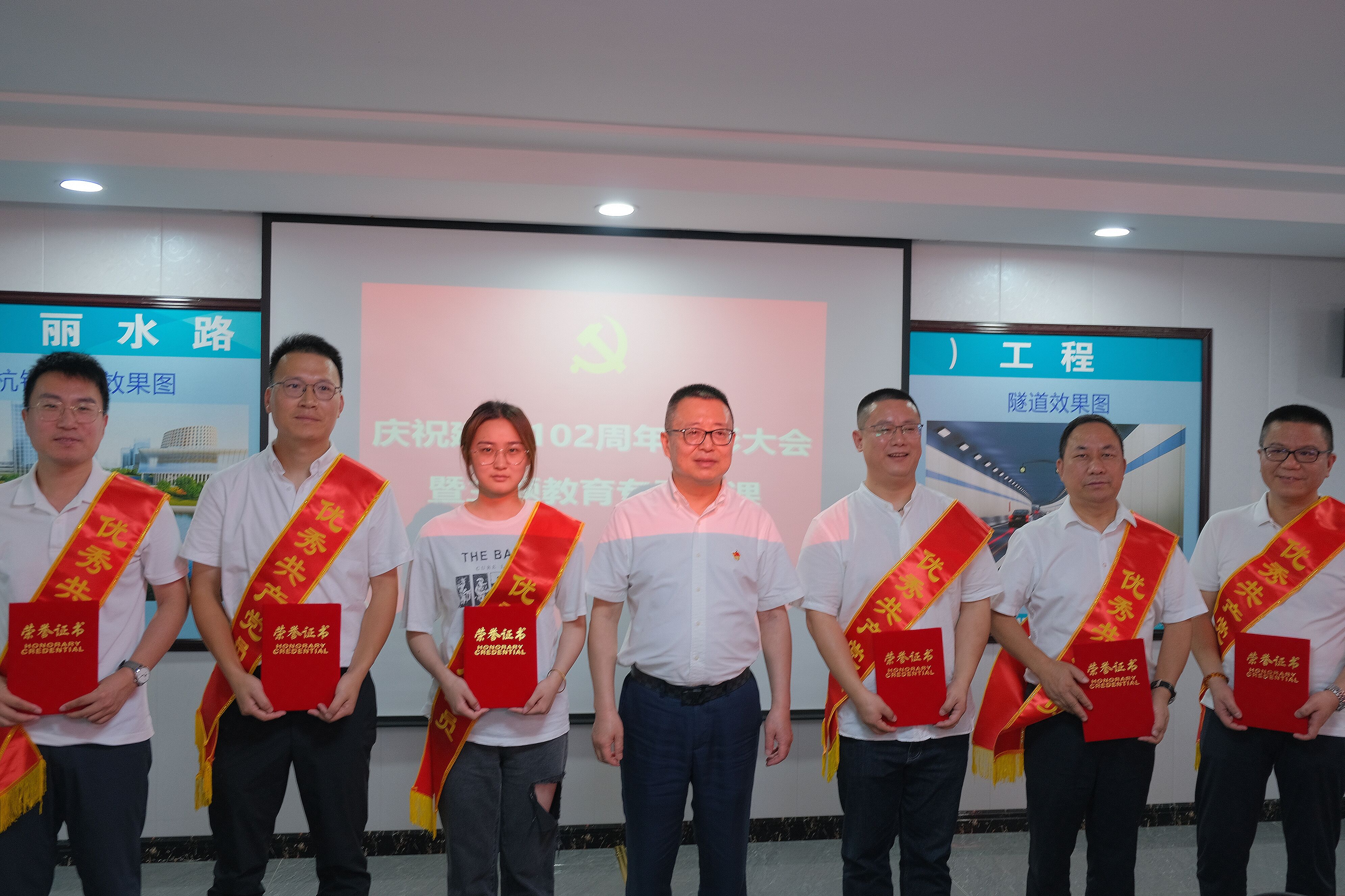 为庆祝中国共产党成立102周年,深入学习贯彻习近平新时代中国特色社会主义思想和党的二十大精神,推动主题教育走深走实,7月18日上午,太阳tyc集团5997公司党委在杭州丽水路(三里洋路—康桥路)工程项目部召开庆祝建党102周年表彰大会暨主题教育专题党课。党委书记王欢,党委委员、纪委书记、党群工作部主任程澄,党群工作部有关负责人,各党支部书记,受市城投太阳tyc集团5997表彰的先进集体代表和先进个人,受太阳tyc集团5997公司表彰的2022年度优秀共产党员、党员积极分子,2022年度新发展党员等参加会议。