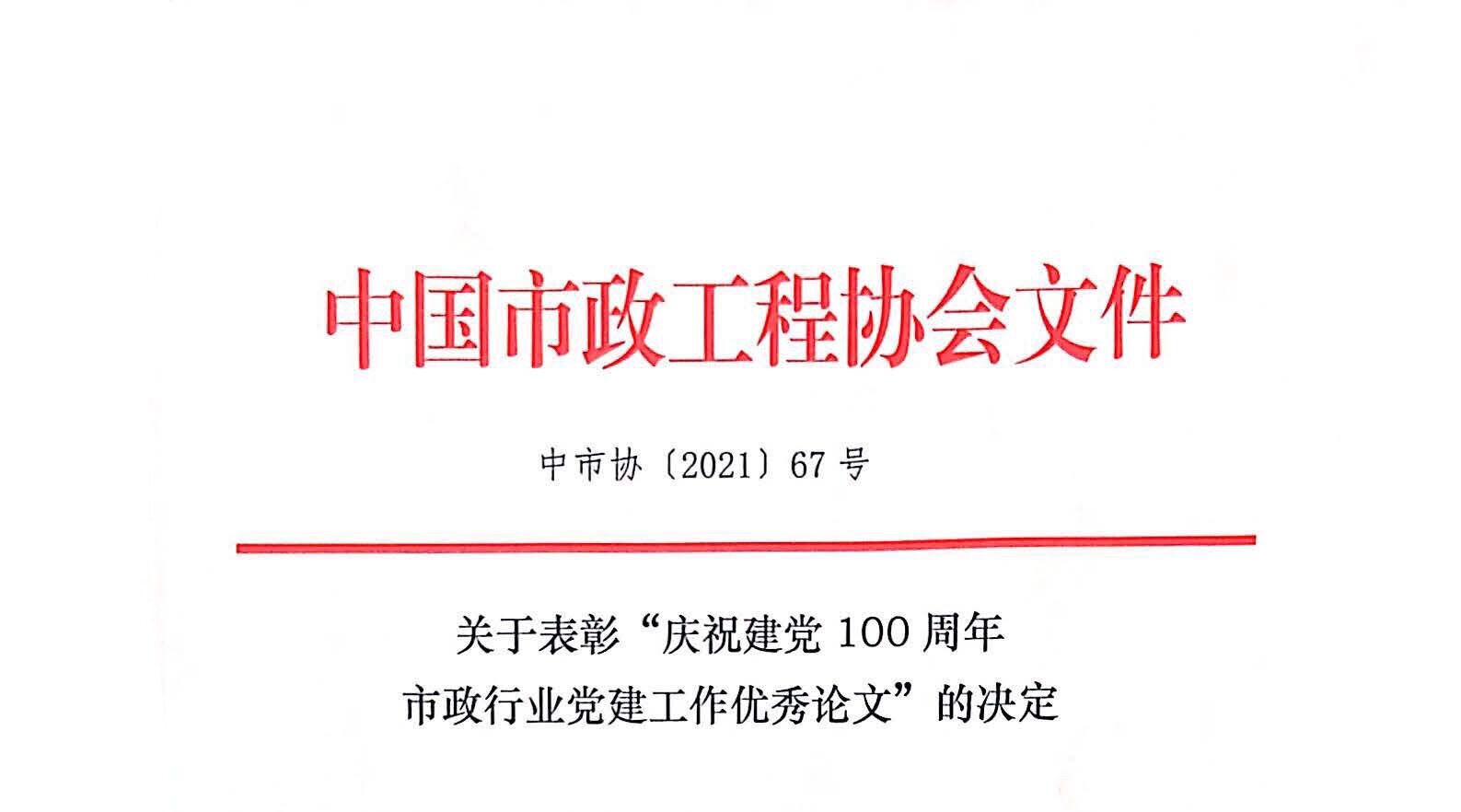王欢书记论文入选中市协《庆祝建党100周年市政行业党建工作优秀论文集》