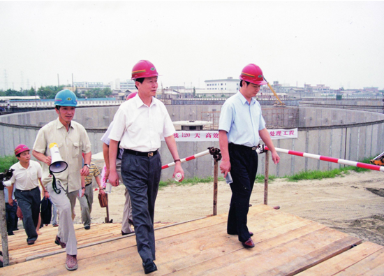 时任国家发展计划委员会副主任李荣融视察15vip太阳集团登录四堡污水处理扩建工程