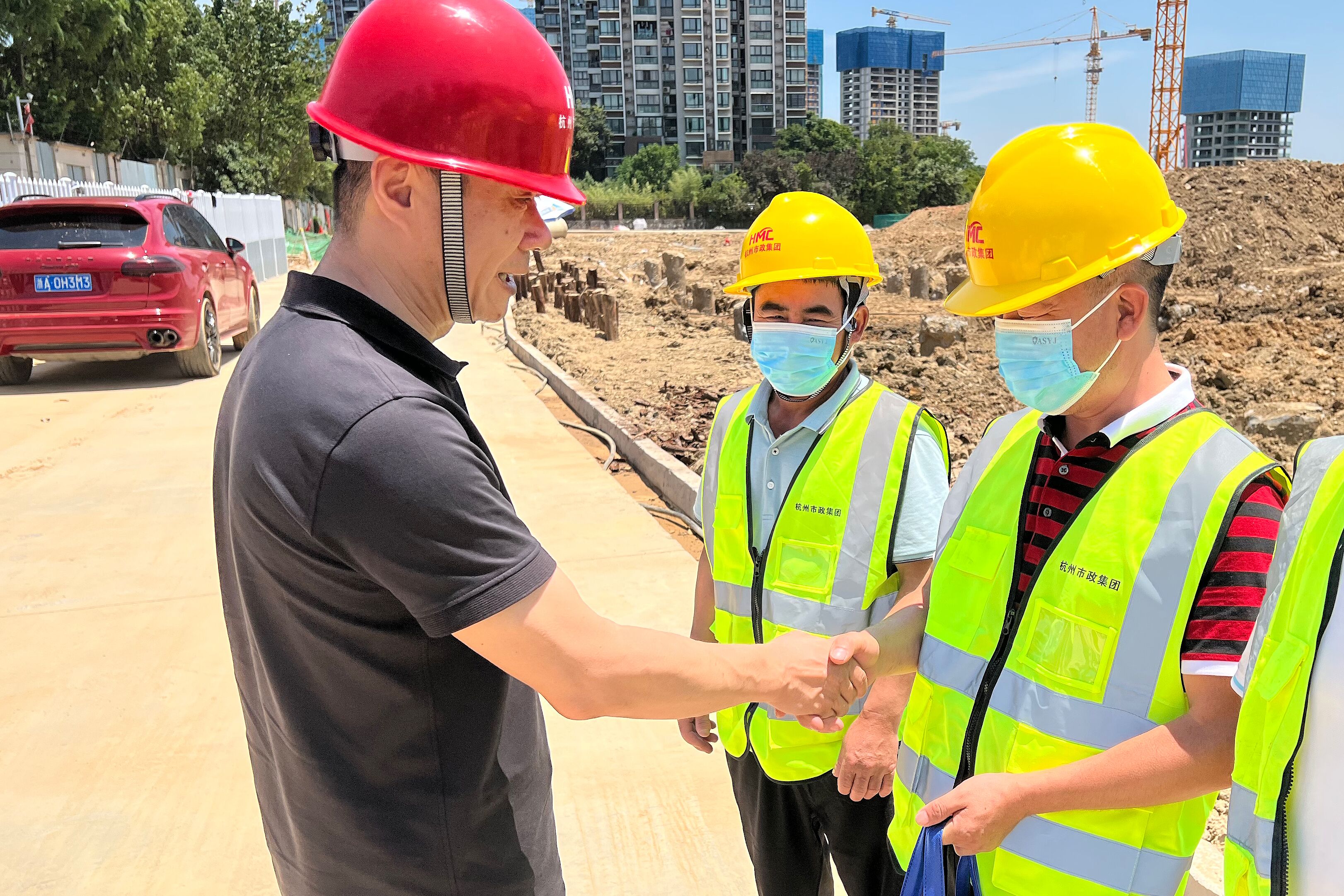 13日、14日,OK138太阳集团公司党委书记、工会主席王欢和党委委员、纪委书记、工会副主席、党群工作部主任程澄,副总经理方赤华一起,带领总部有关部门人员,顶着烈日先后赶赴养护分公司嘉善项目、杭州未来科技城第八小学项目现场看望慰问一线人员。